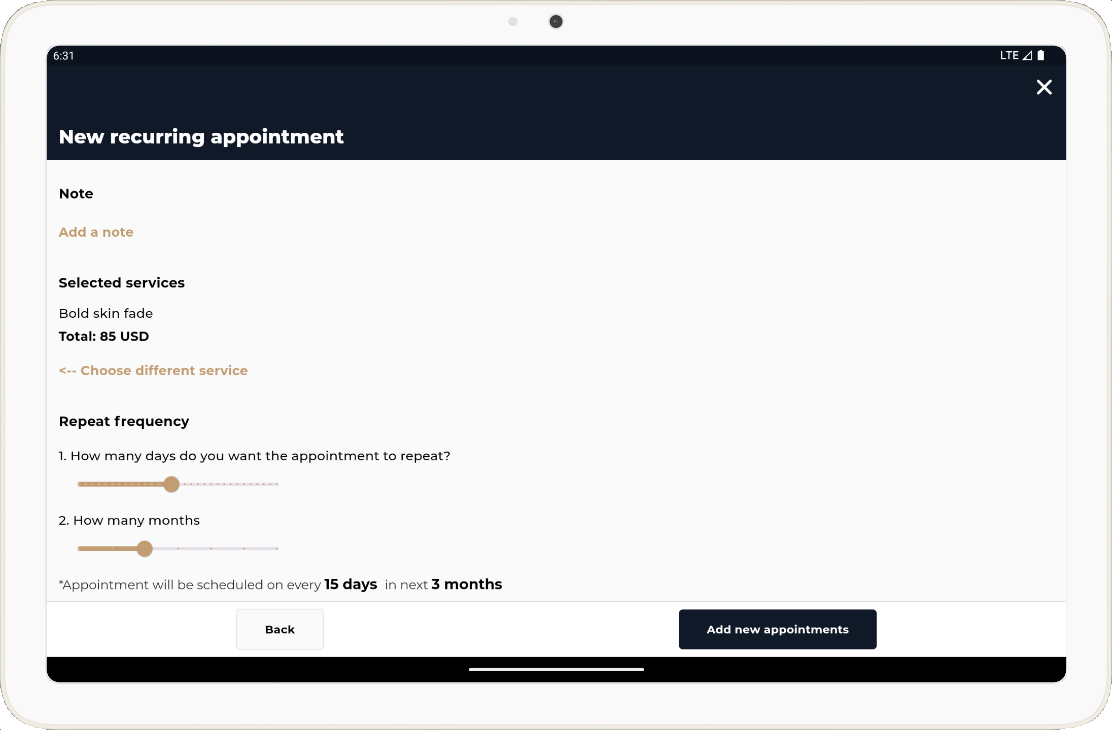 If you have regular customers, you can quickly book their appointments for the next year. For example, for Zoki, who comes every Wednesday at 5 PM, you can book all his appointments in just a few seconds.